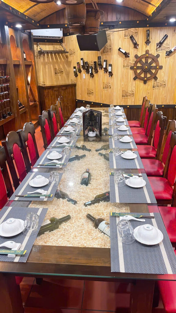 Từng góc nhỏ của nhà hàng đều được chăm chút tỉ mỉ – từ bàn ghế gỗ cao cấp, những chiếc kệ rượu vang cổ điển, cho đến cách bài trí đèn nến. Tất cả mang đến trải nghiệm fine dining đẳng cấp, lý tưởng cho mọi buổi tiệc và sự kiện quan trọng.